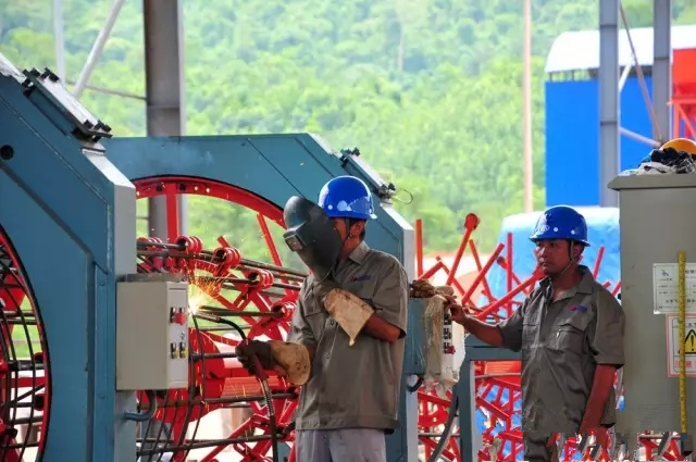 中國(guó)電建員工在中老鐵路四、五標(biāo)段的車間里加工隧道、橋梁建設(shè)材料。
