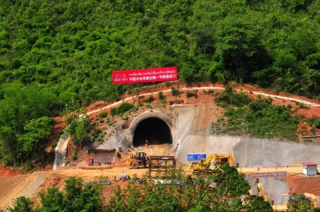 中國(guó)電建旗下的中國(guó)水利水電第三工程局有限公司在老撾北部瑯勃拉邦省山林里建設(shè)中老鐵路隧道。